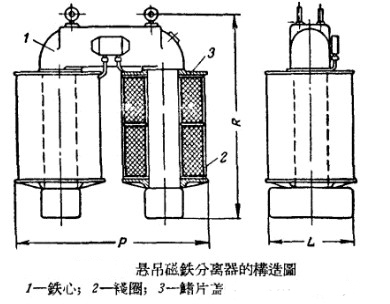 球磨機運轉(zhuǎn)中所用的懸吊磁鐵分離器則主要由一些馬蹄形的鐵心構(gòu)成,其上繞有線圈,而下段裝有的端部。經(jīng)過此設(shè)備分離出來的金屬塊會在人工作用除去,具體結(jié)構(gòu)如下: